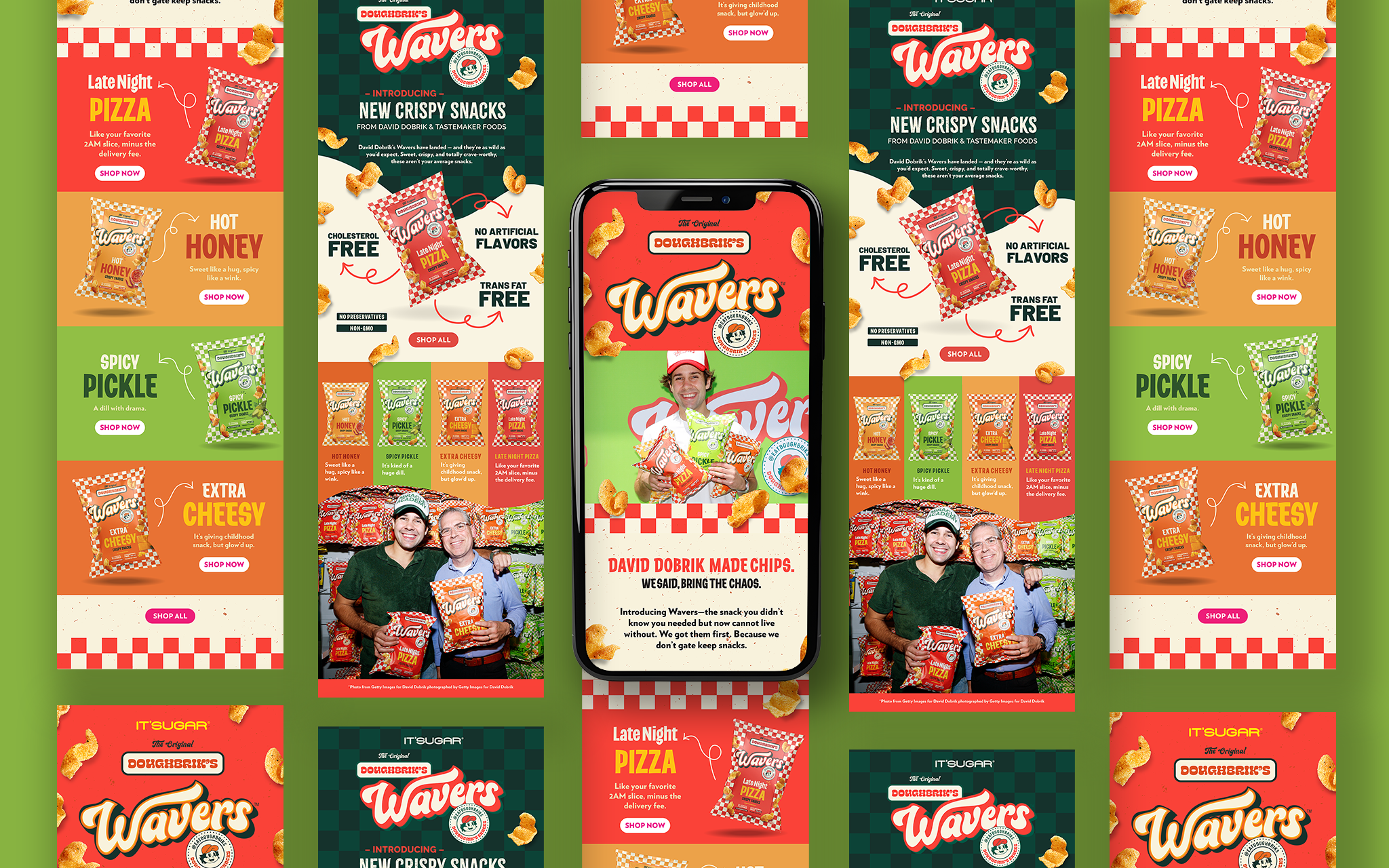 Digital assets for the Doughbrik’s Snacks new Wavers Chips launch party and store drop at IT’SUGAR stores and online.